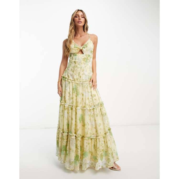 Product id: Floral print knotted 2025 cutout back maxi dress