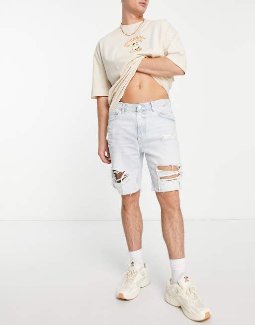 - mens white distressed denim shorts