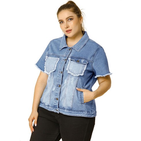 Product id: Plus size jean 2025 jacket with sweatshirt sleeves