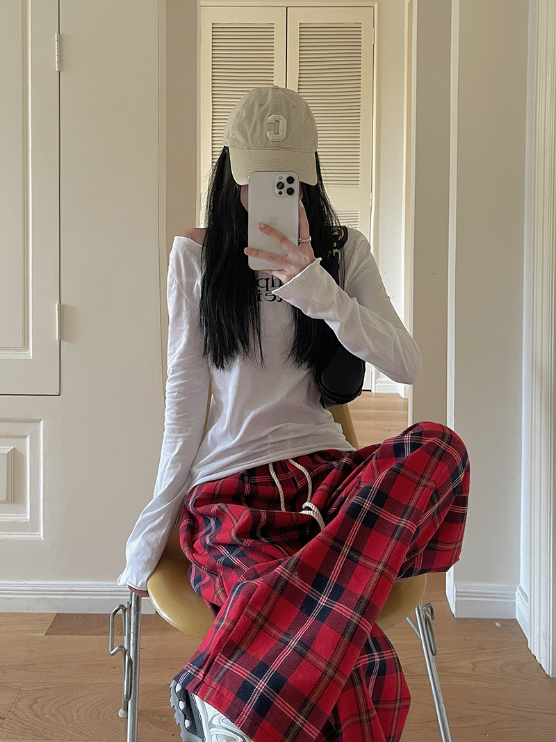Product id: Red plaid 2025 jeans womens