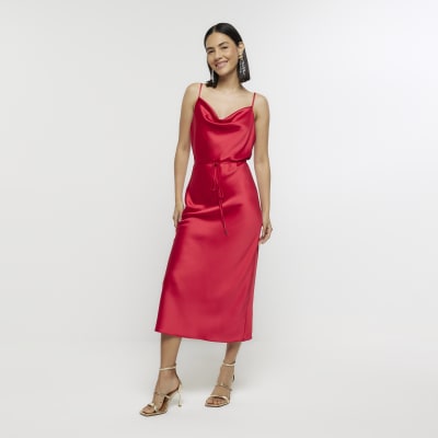Product id: Red silk cowl neck 2025 dress