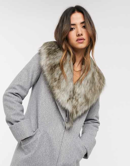 - river island tailored coat with faux fur trim in navy