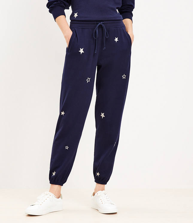 - sweatpants with stars on them