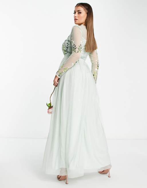 - asos edition wedding floral embroidered dobby mesh flutter sleeve maxi dress