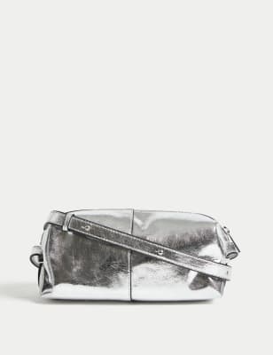 - silver metallic leather crossbody bag